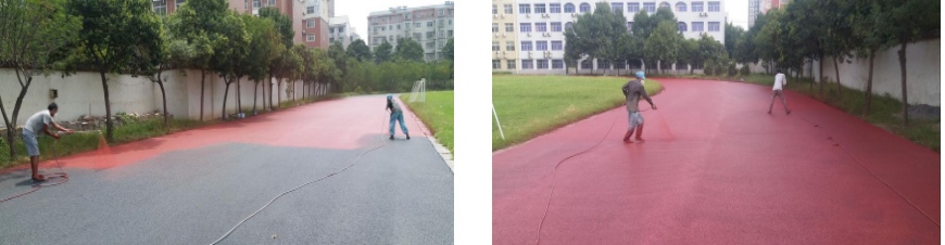 3施工工艺简单、施工后快速开放交通:可采用常规的喷涂工艺,直接喷涂在稳定的沥青、水泥混凝土及人行道板等面层表面,可快色完成大面积铺装,最快可1小时快速固化,2个小时开放交通。